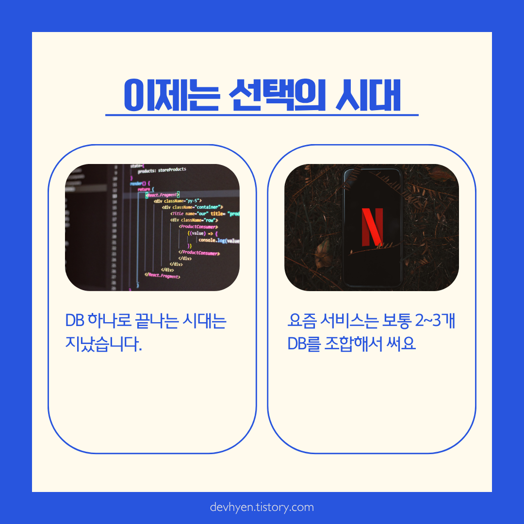 이제는 하나로 끝나는 DB 아키텍처는 찾아보기 어렵습니다.
