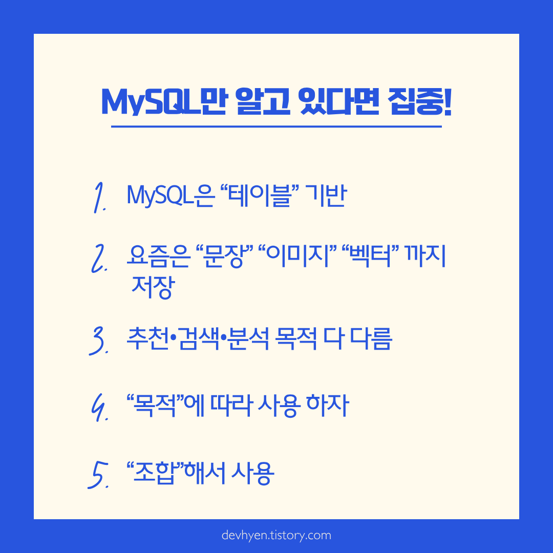 실무에선 검색, 분석, 추천 등 목적에 따라 전혀 다른 DB들이 함께 사용되는 걸 보고 의문이 들었습니다.